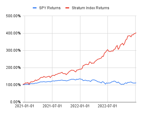 While the S&P 500 fell −16.6%, the Stratum Index surged.