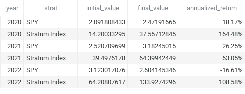 The Stratum Index is not perfect. But in 2022, one stat says it all: +108.6%.